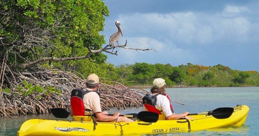 On our St. Thomas Mangrove Lagoon tours, you will kayak among the many small islands of the unique Inner Mangrove Lagoon. You may see a variety of birds such as brown pelicans, blue herons, night herons, egrets, yellow warblers and hummingbirds.
